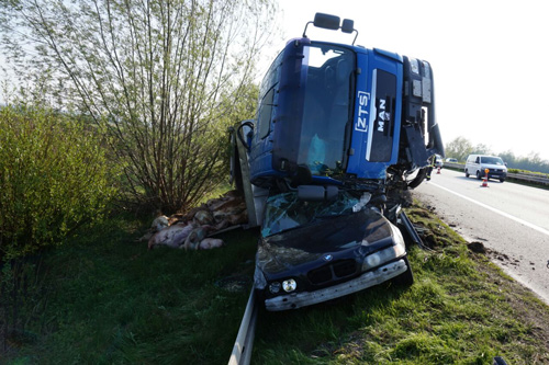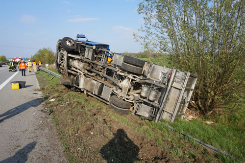 Dankenswerterweise von der FF Pilsting (BY) zur Verfügung gestellt: LKW seitlich auf PKW. Hier mit glimpflichen Ausgang, die Insassen des Pannen-PKW waren bereits hinter der Leitplanke in Sicherheit, der LKW-Lenker blieb unverletzt. Die Bilder eignen sich hervorragend zur Ausbildung: Wie würdet ihr zur Menschenrettung im PKW vorgehen?