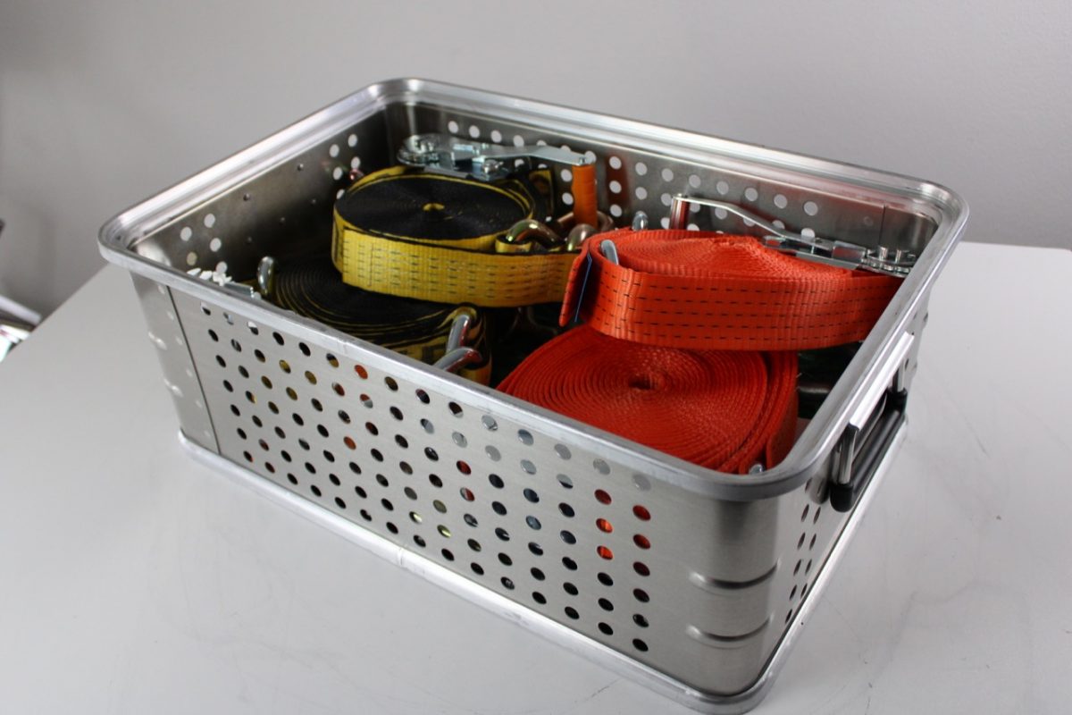 Die Namen der Sätze orientieren sich logischerweise am primären Einsatzzweck. Wir haben uns für die offenen Transportkörbe entschieden weil die Geräte einerseits leichter zugänglich sind und zweitens schneller trocknen – bei Kisten mit Deckeln sollte man bei Nässe aufpassen.
