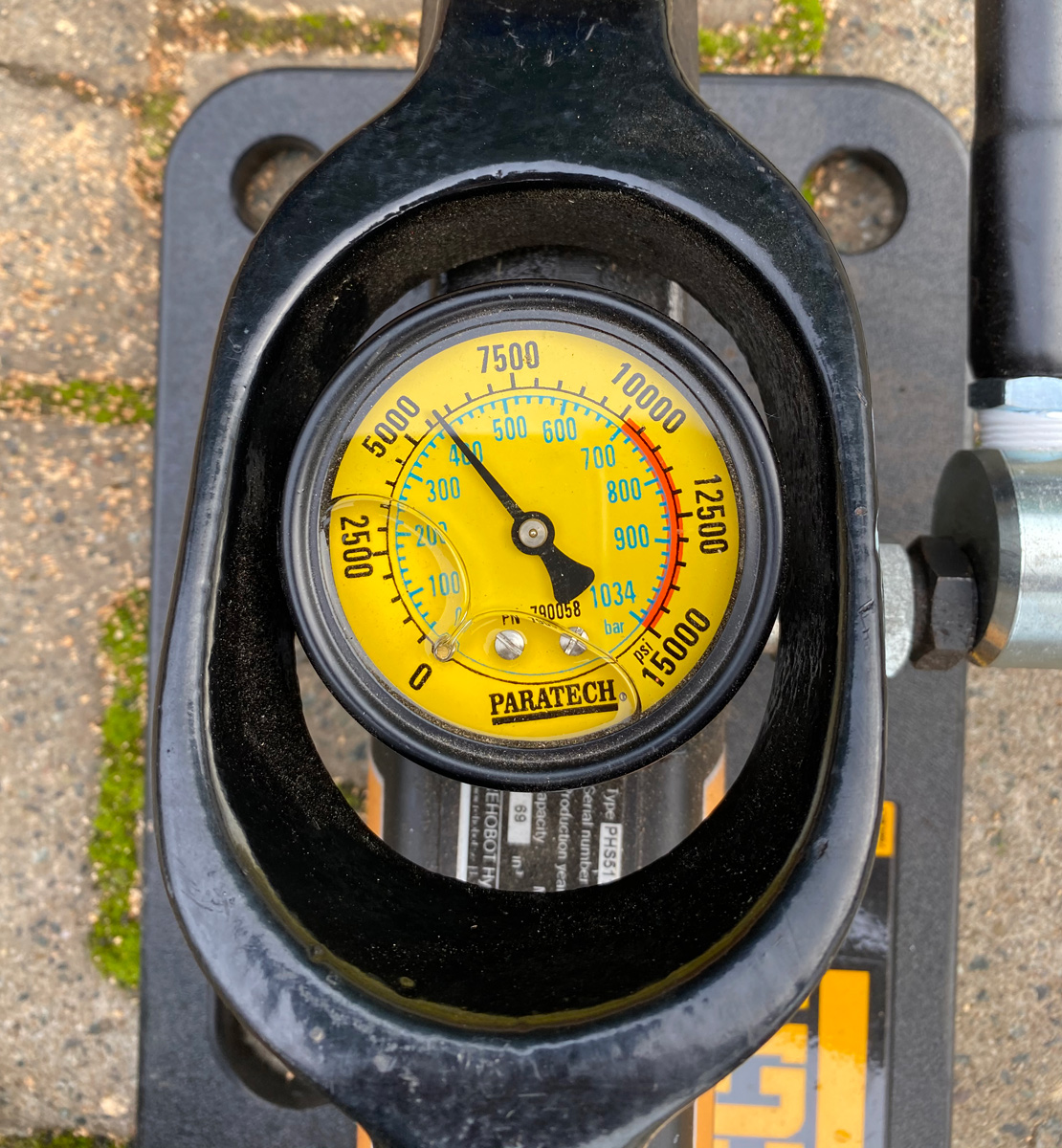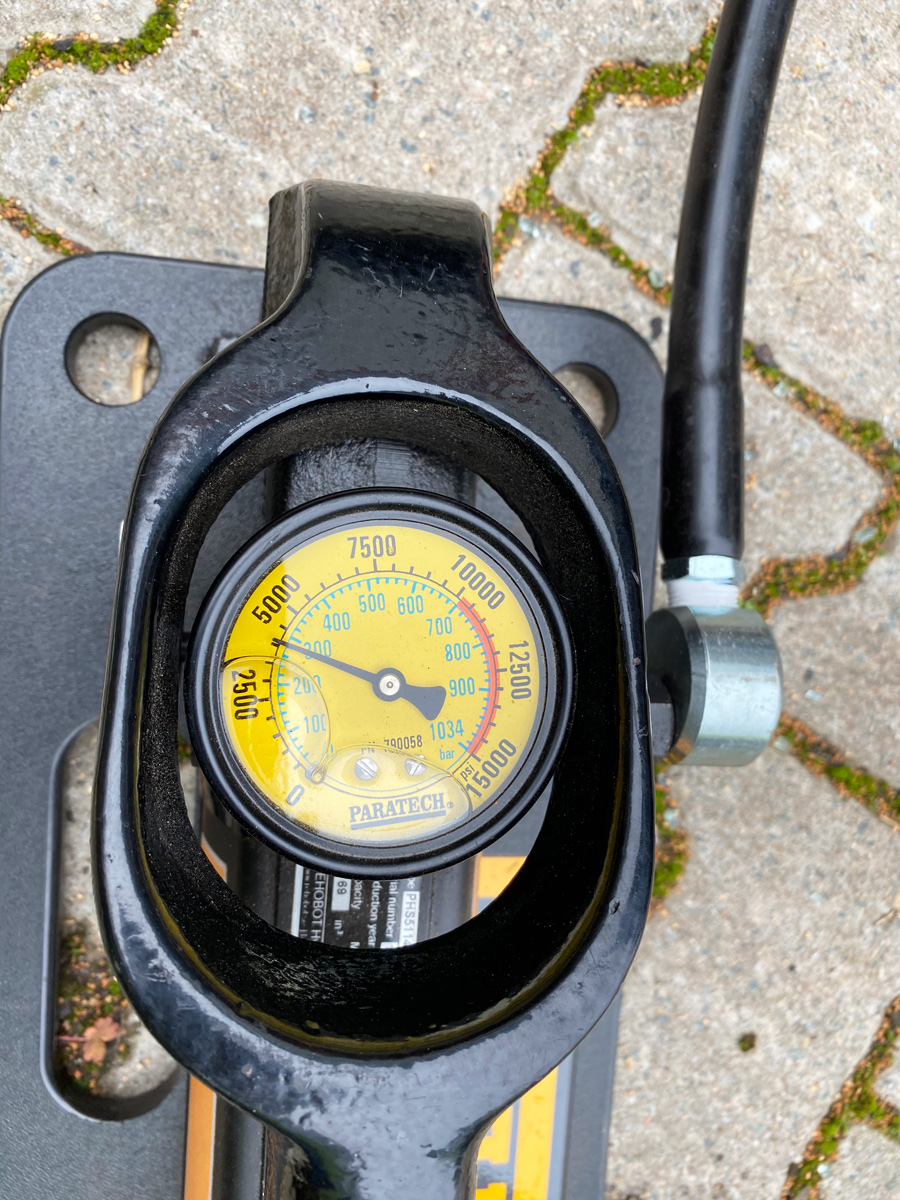 In unserem Fall war der Arbeitsdruck der HFS bei 290bar. Das entspricht einer Hublast von ca. 3,8t: