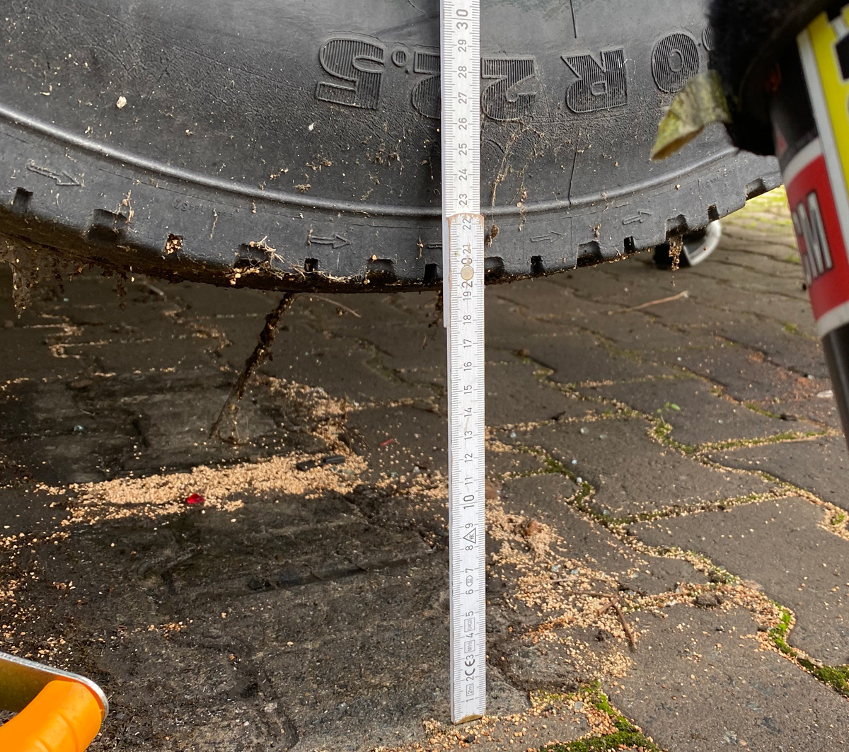 Dadurch, dass die Hinterachsen meist Zwillingsbereift sind und die Felge nach innen gewölbt ist haben wir hier kein großes Problem einen Hubpunkt zu finden.