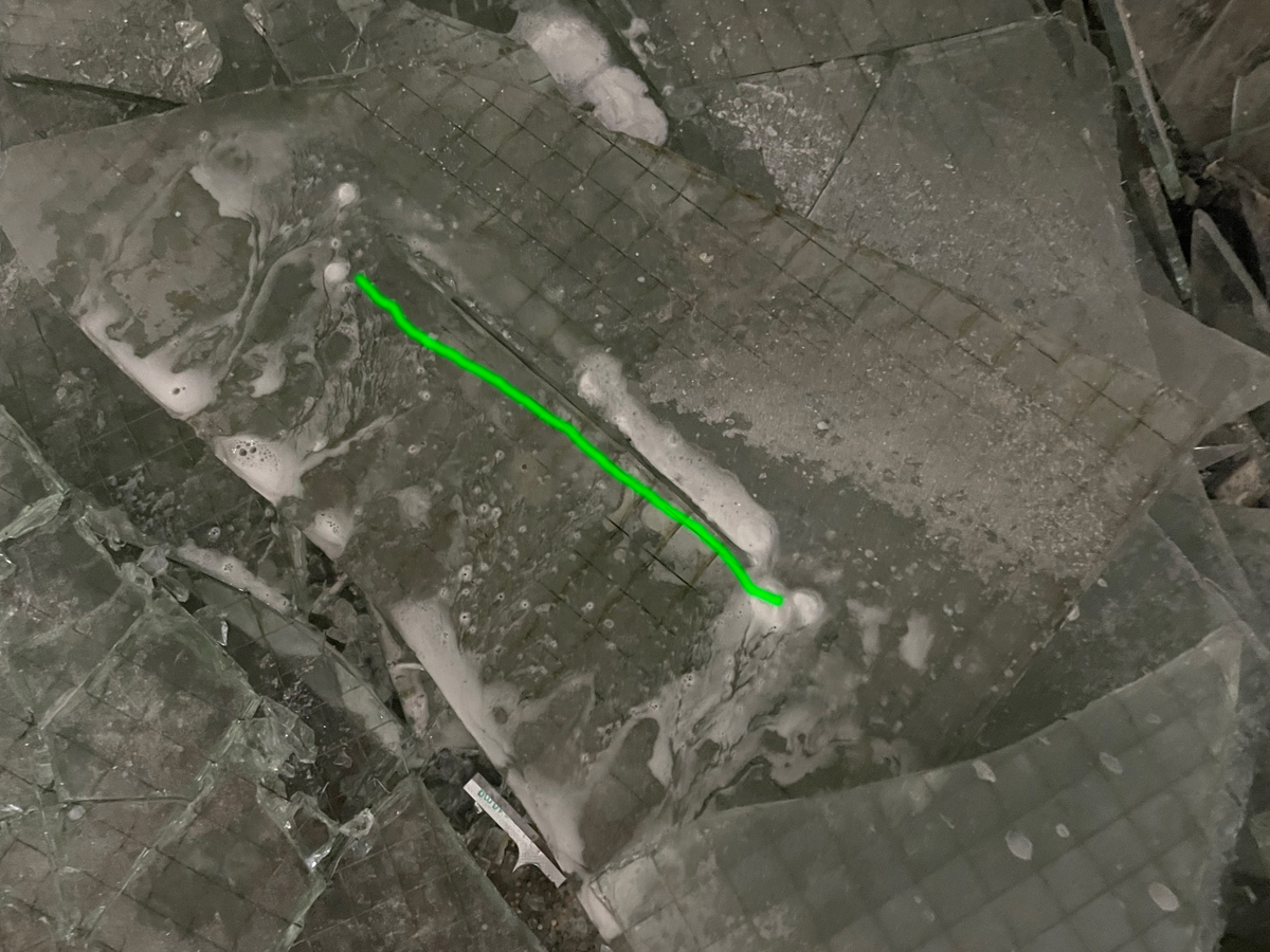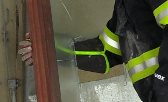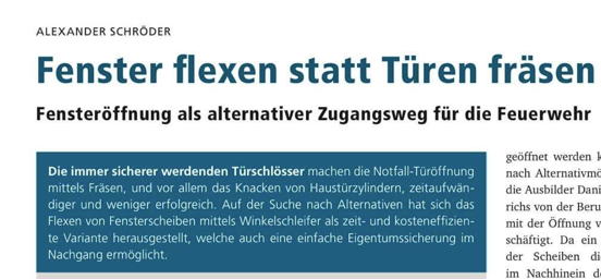 In diesem Artikel von Alexander Schröder in der Brandschutz 2/23 wird beschrieben, wie Fensterscheiben auch „geflext“ werden können. Dies war auch unser Ausgangspunkt, mit einer großen Öffnung kann man mit der Hand direkt an den Fenstergriff ran und hat somit gute Chancen auf Erfolg. Vor Allem kann man mit viel Kraft einwirken.